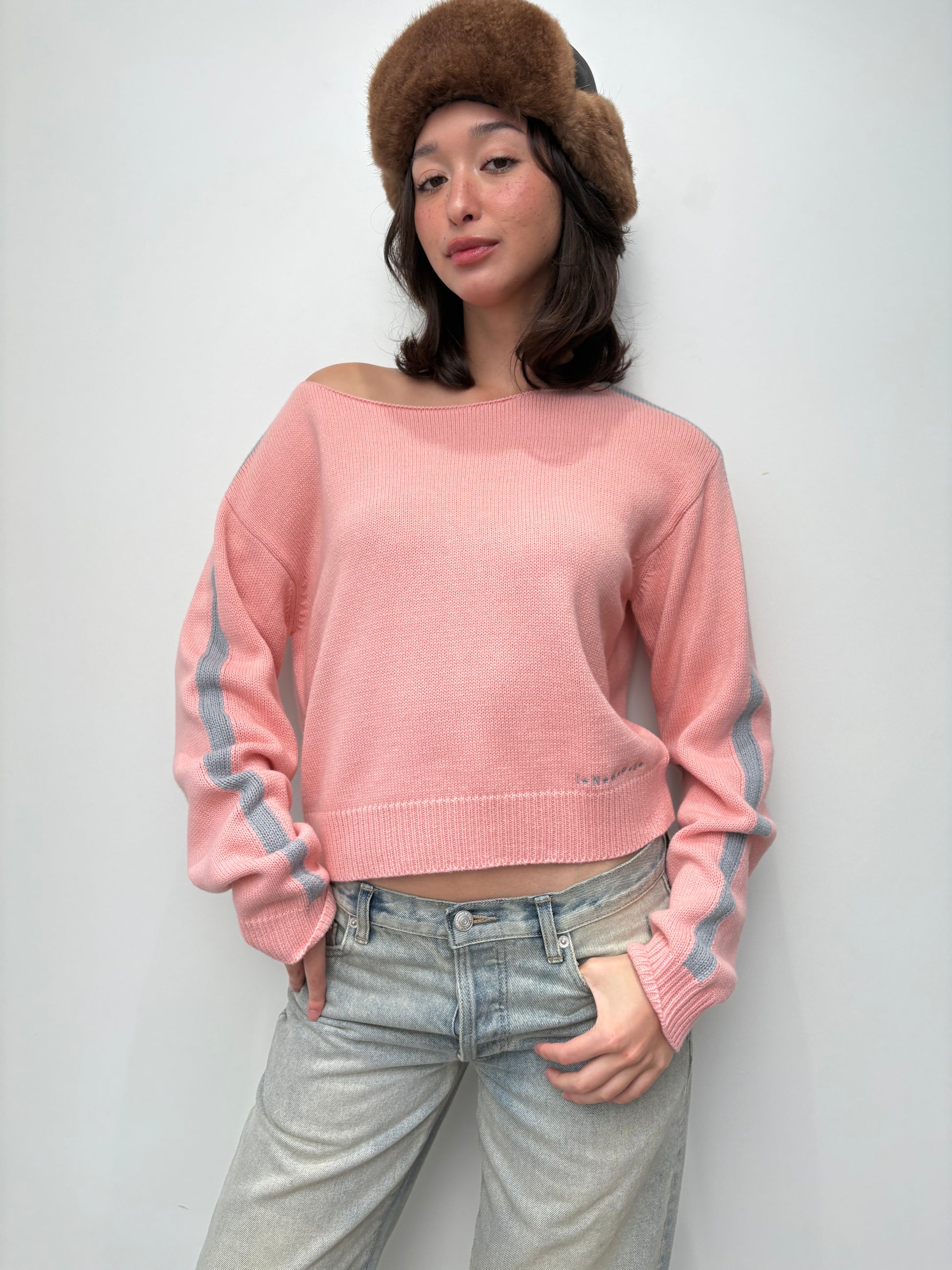 Relaxed silhouette with an effortless off-shoulder neckline. Crafted in a soft knit for everyday ease. The slouchy cut allows styling tucked in or left loose. A versatile piece that balances casual comfort with a refined edge.