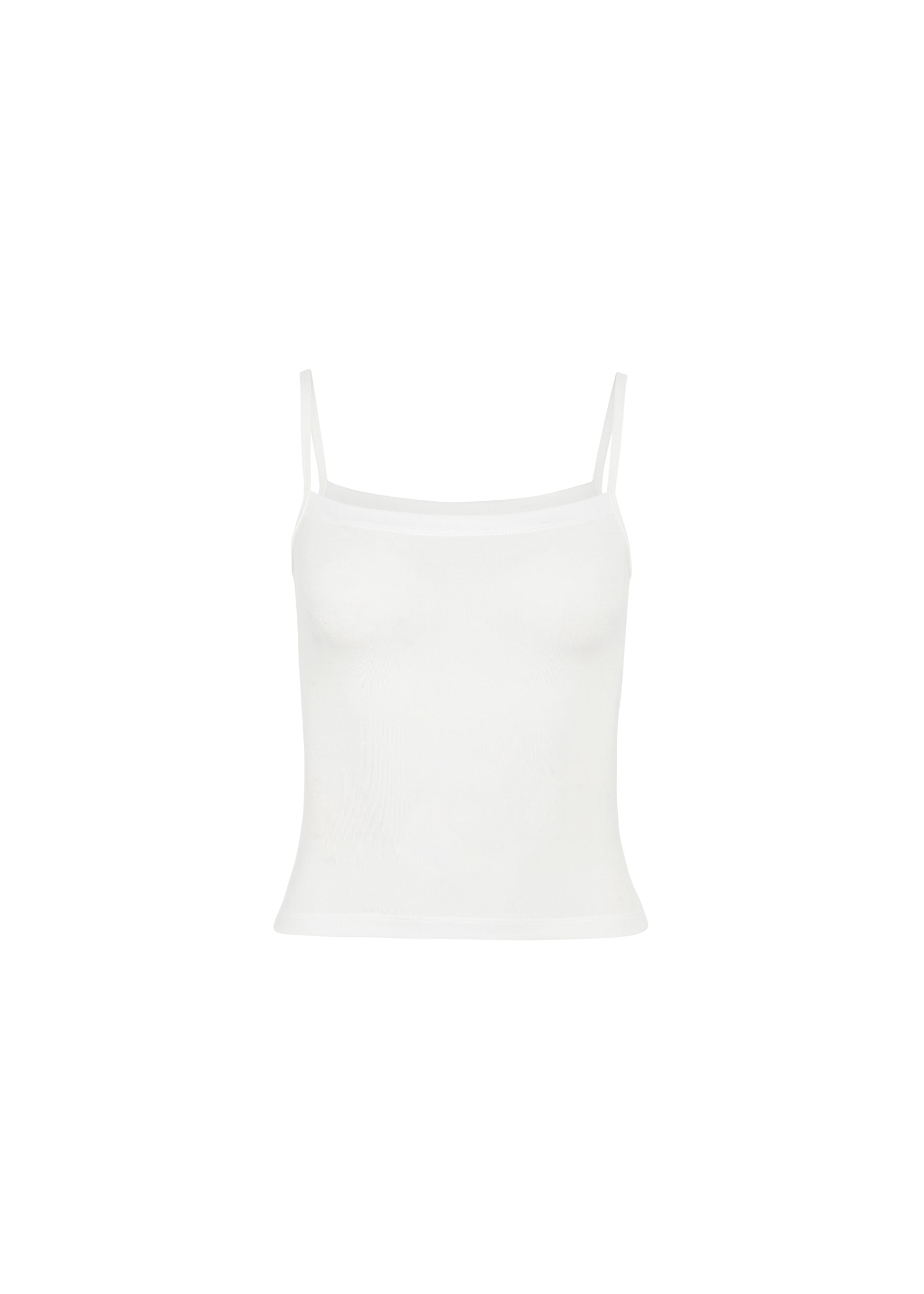 introducing the gentle classic camisole - a baby rib spaghetti tank with a modern squareneckline. designed to be form-fitting yet flattering, it hugs the body softly while offering the perfect length to tuck into a high waist or wear free.