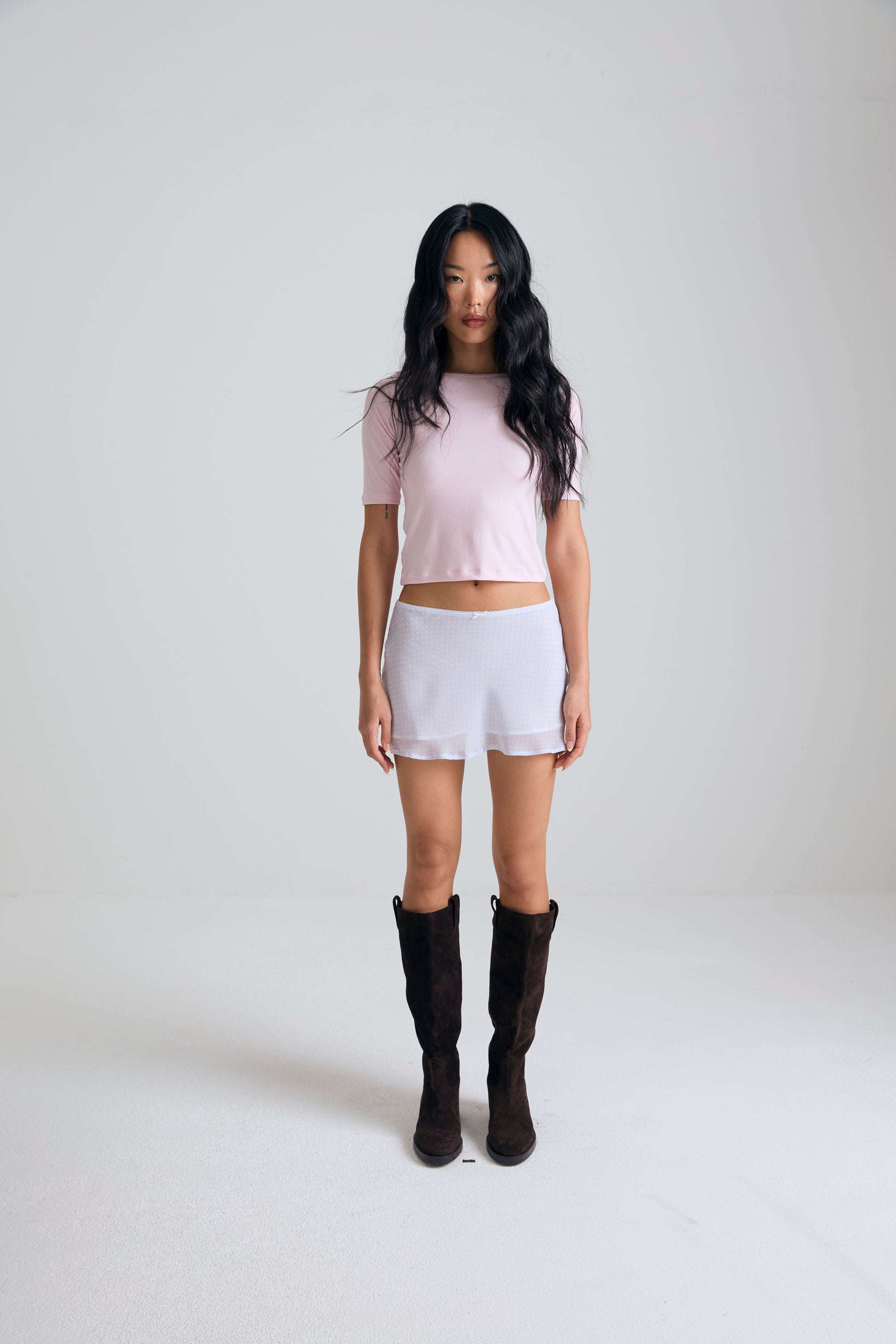 Boatneck Knit crop Top - polar ribbon