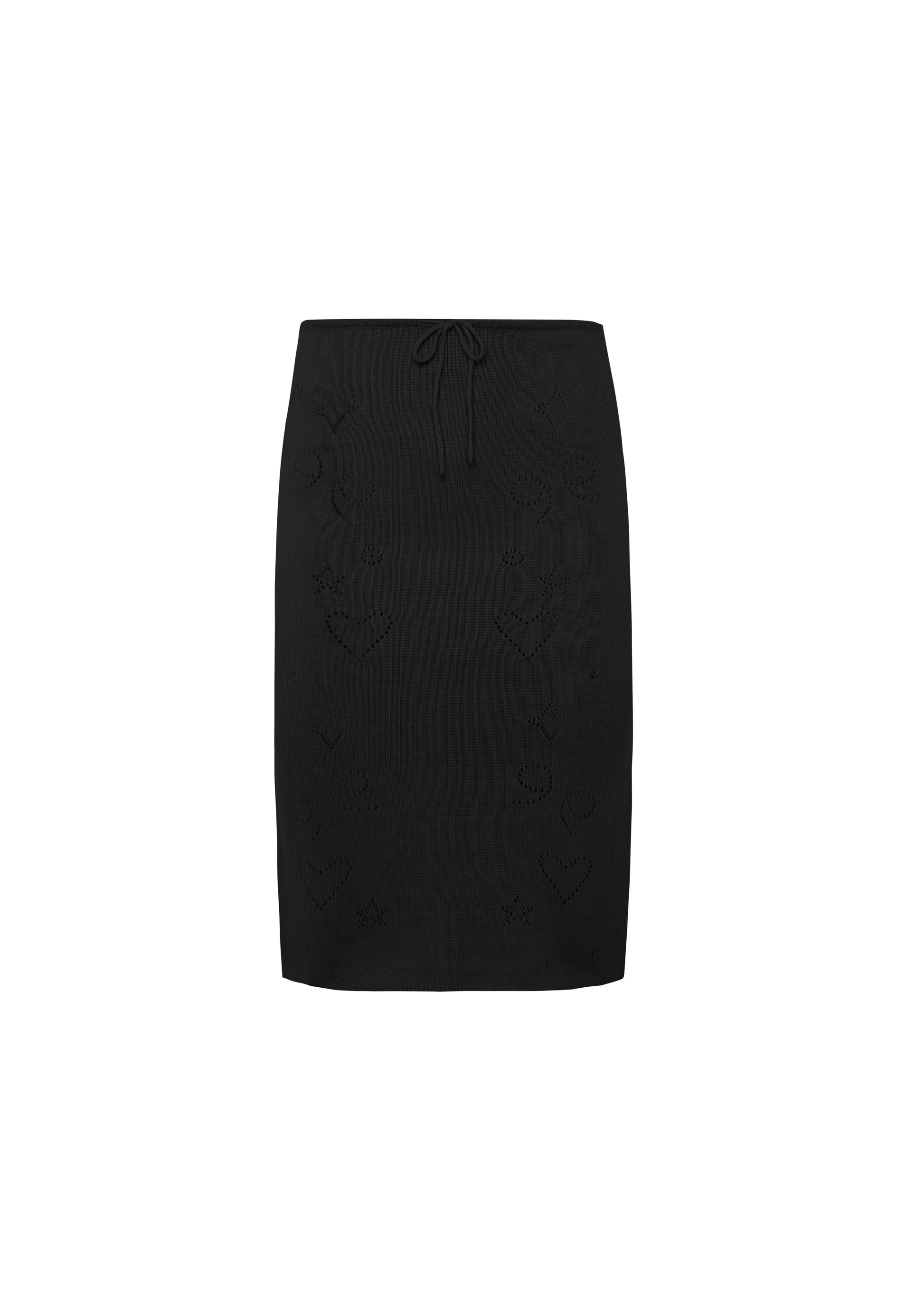 Knit Midi Skirt with Emoji Cut-Outs - Yoru