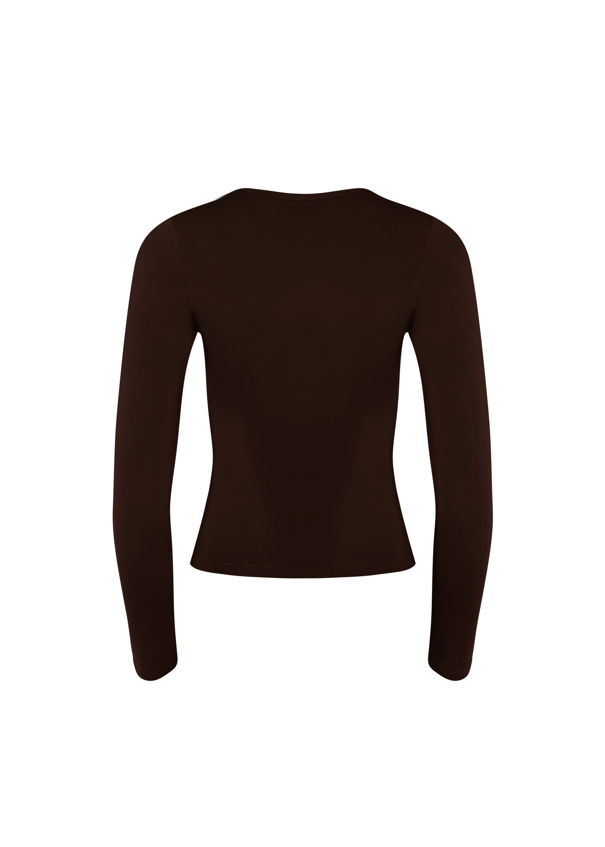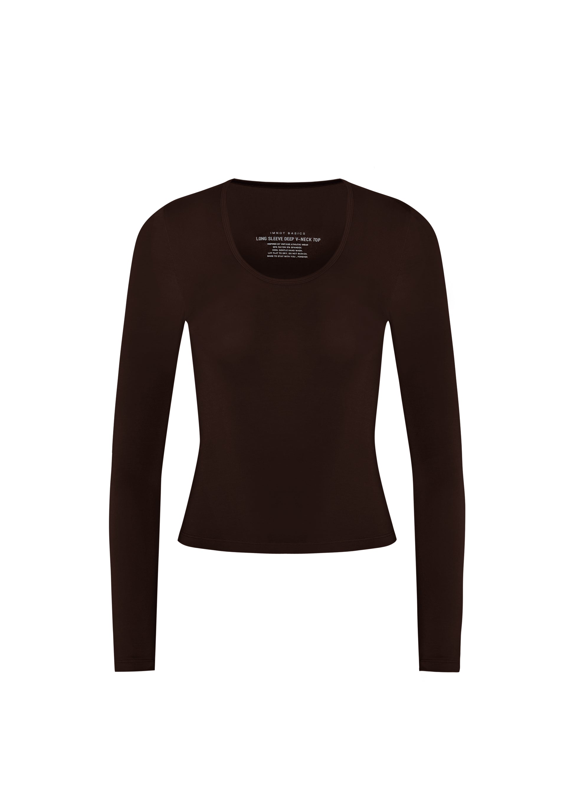 LONG SLEEVE DEEP V NECK TOP - CHOCOLATE BARK