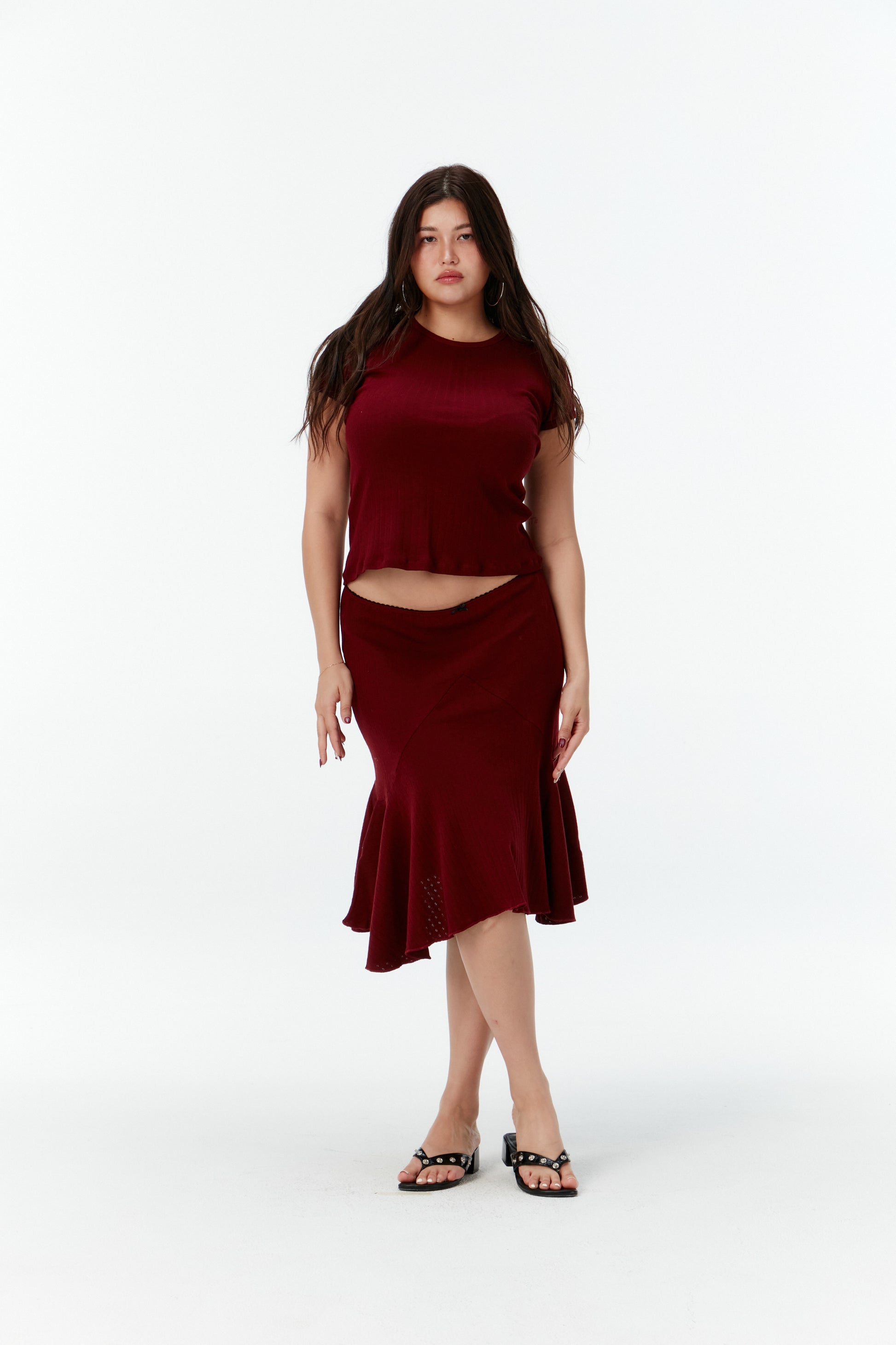 Pointelle Basic Tee -Dark red cherry