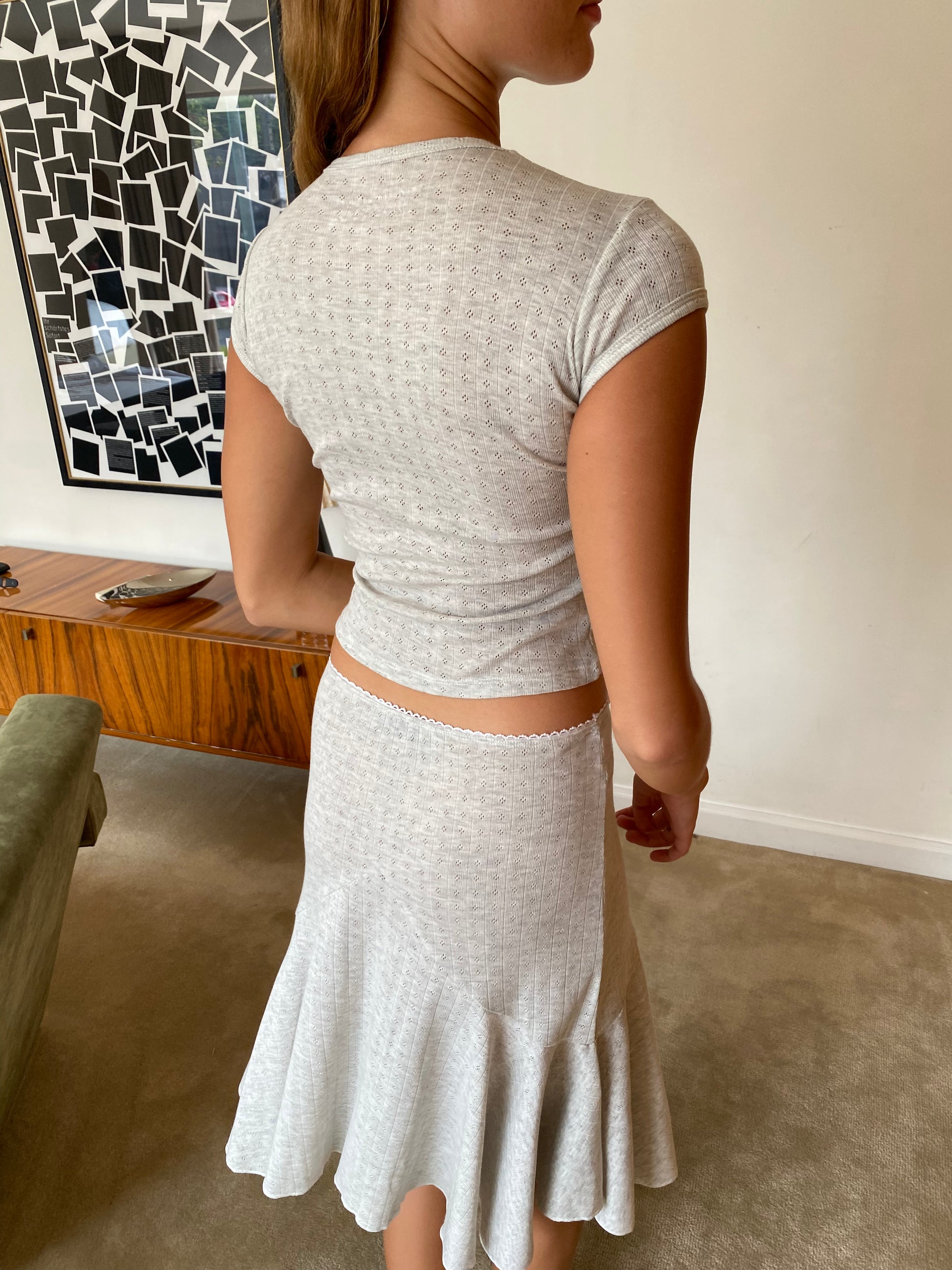 Our simply soft midi dress is designed to flow with a loosely flared hem. We've elevated our classic cami straps and added a silk bow to create a more delicate trim. We hope she becomes a favorite.