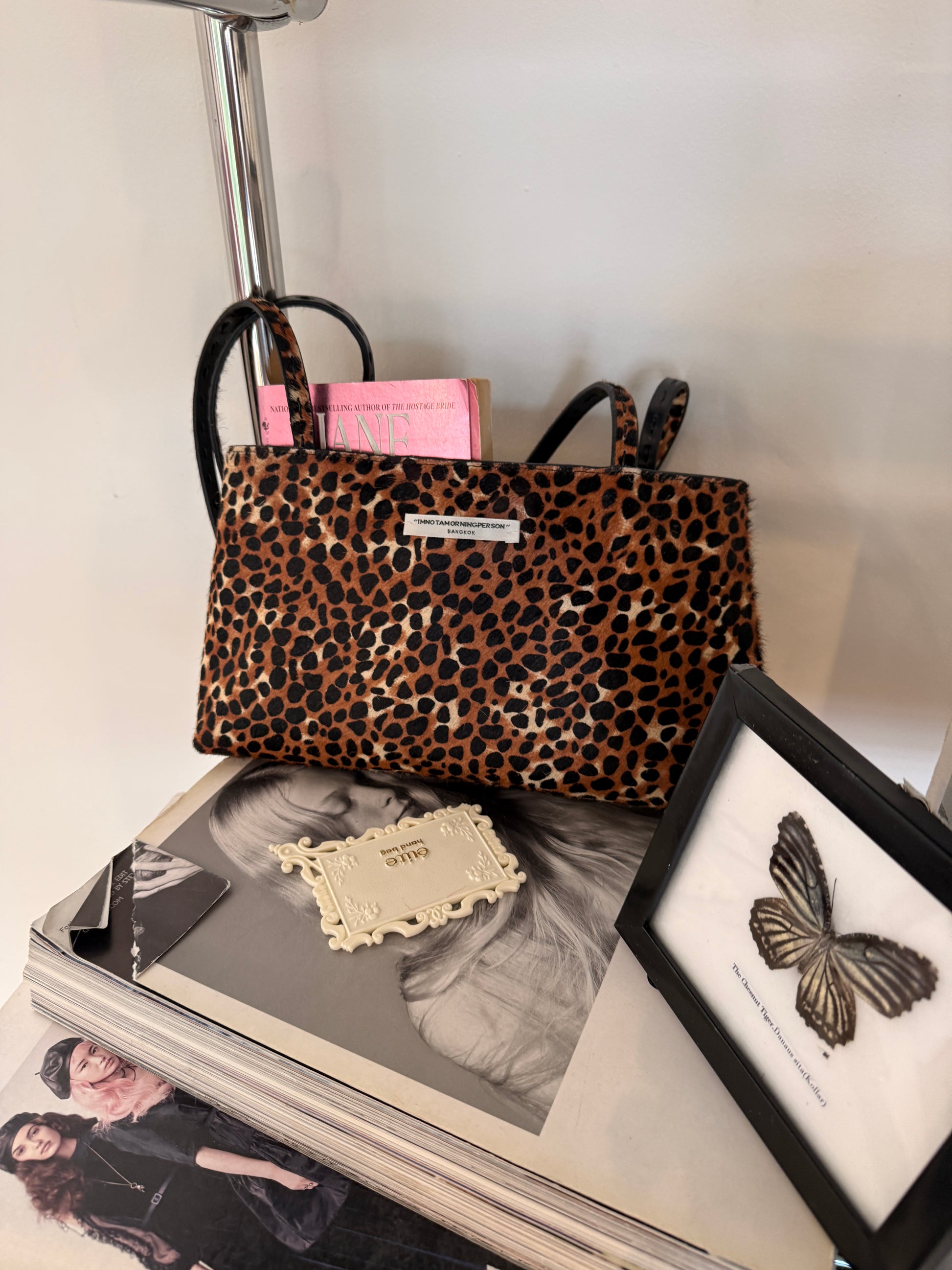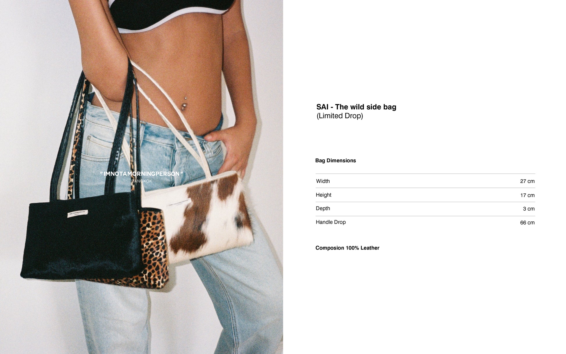 Crafted with pony hair leather and paired with a long strap silhouette.
