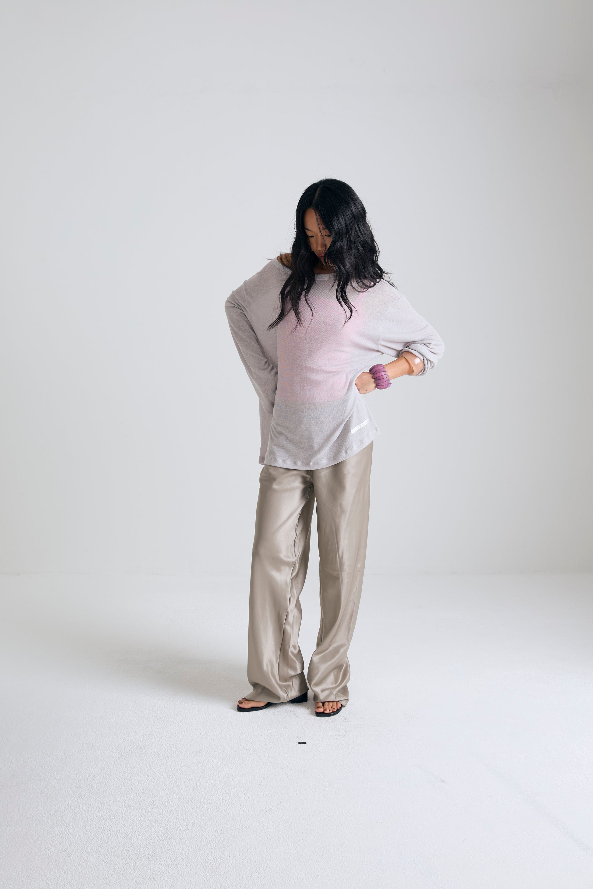 The return of our signature trousers in Re-edition form. Relaxed yet refined, cut on the bias for a graceful drape. Made from mulberry silk blended with 100% cotton,