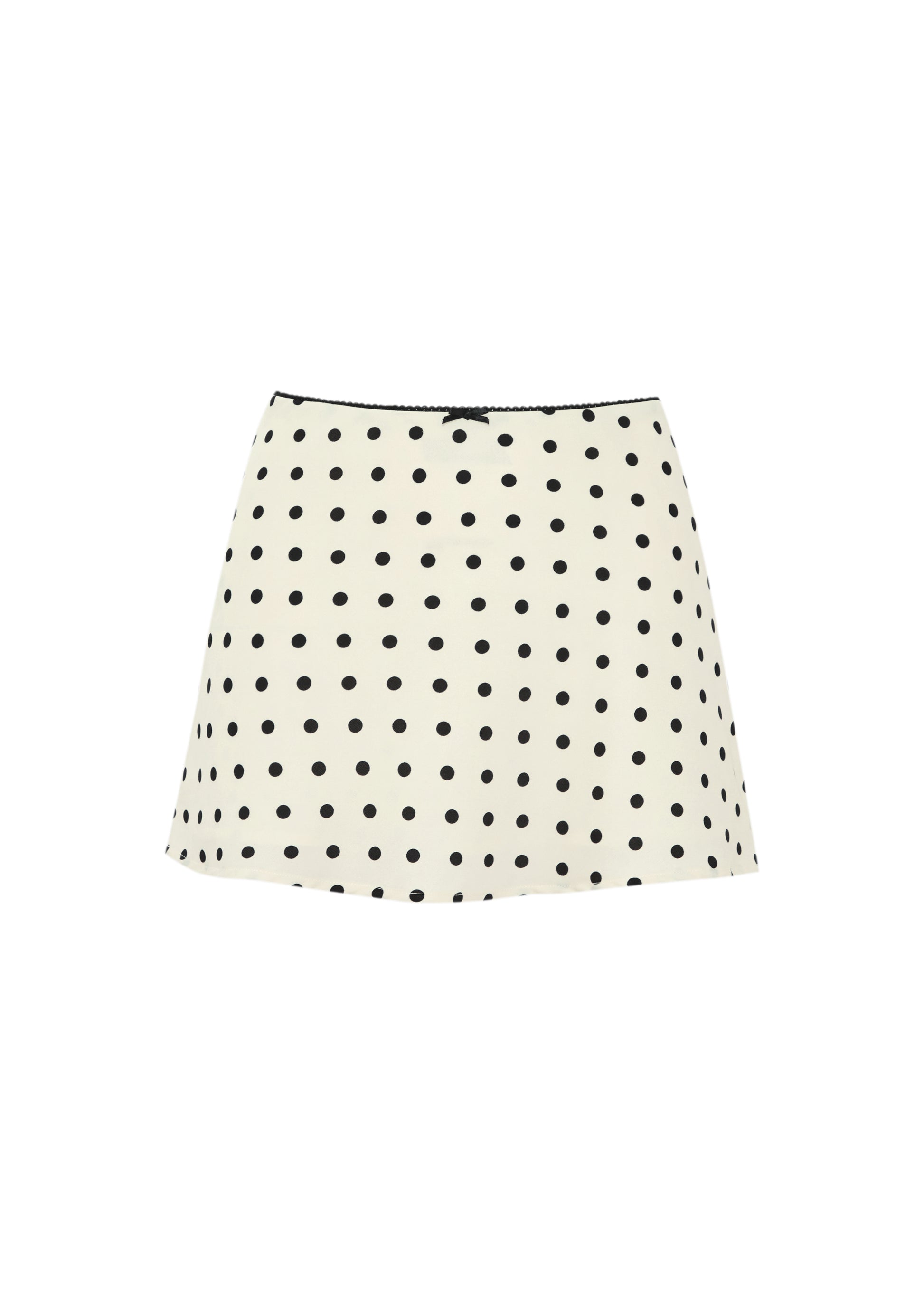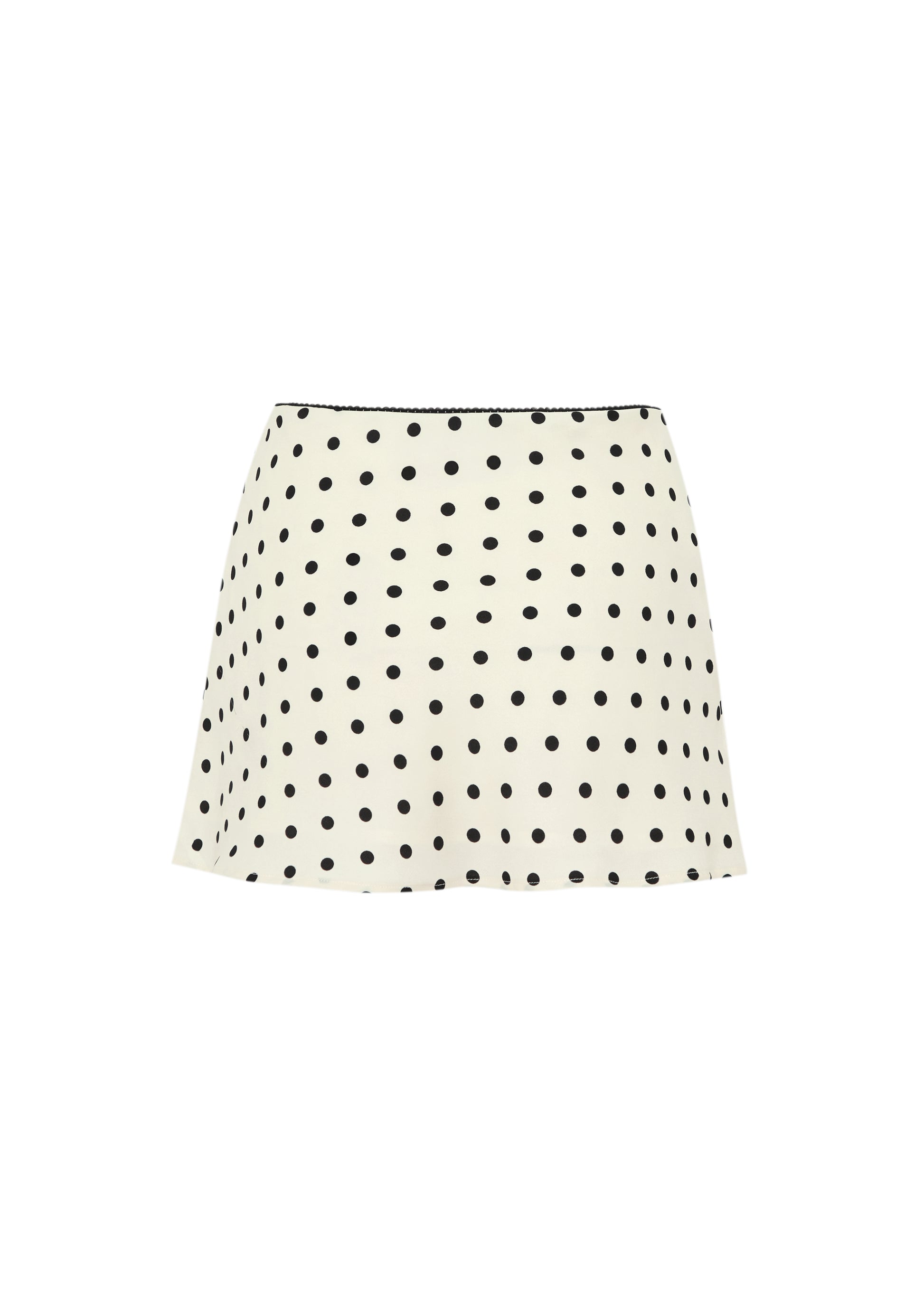 Low-rise mini skirt. Elastic waistband with lace trim detail. No